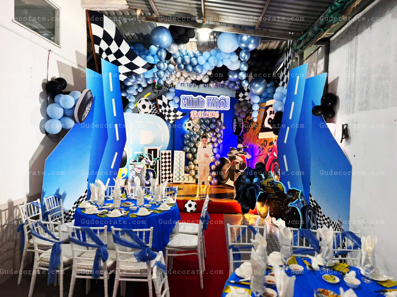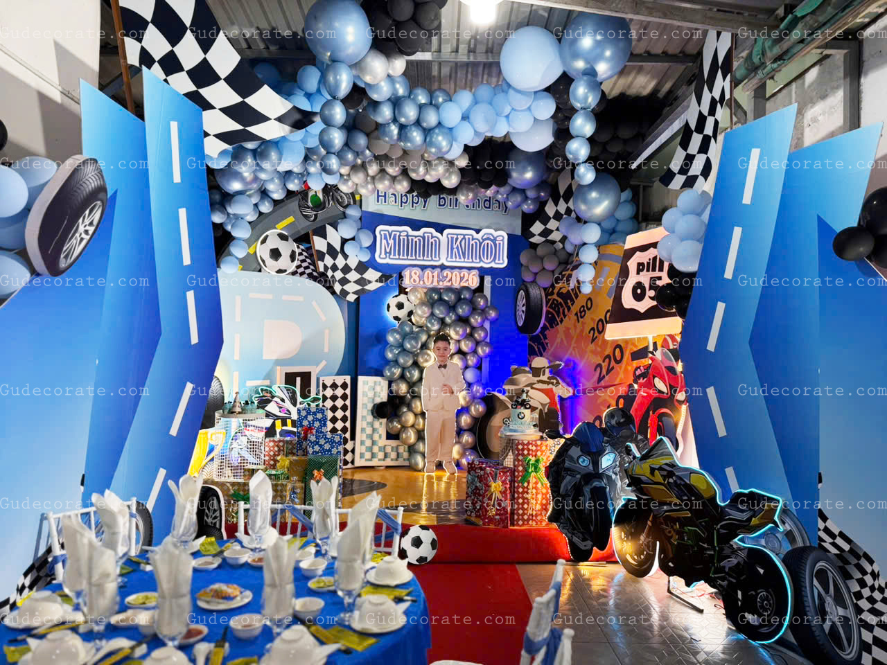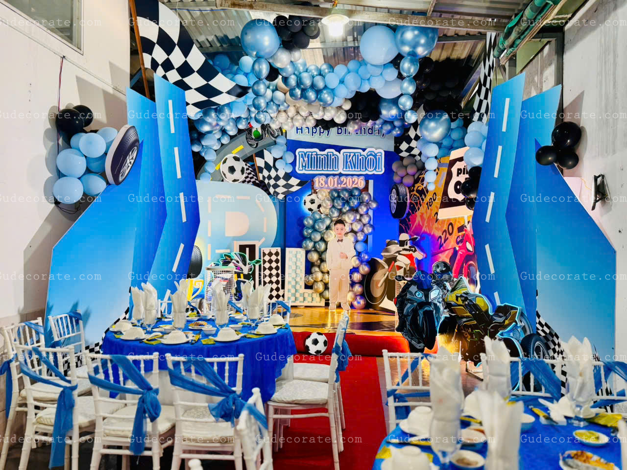 Trang trí sinh nhật theo chủ đề đang trở thành xu hướng được nhiều phụ huynh lựa chọn để tạo nên những kỷ niệm đáng nhớ cho con. Trong đó, concept đua xe – motor thể thao nổi bật với phong cách mạnh mẽ, cá tính, cực kỳ phù hợp cho các bé trai năng động.