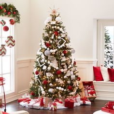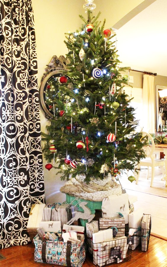 • Một trong những cách giản dị nhất để trang trí mẫu cây thông Giáng sinh 2022 là bày trí những hộp quà nhiều màu sắc.