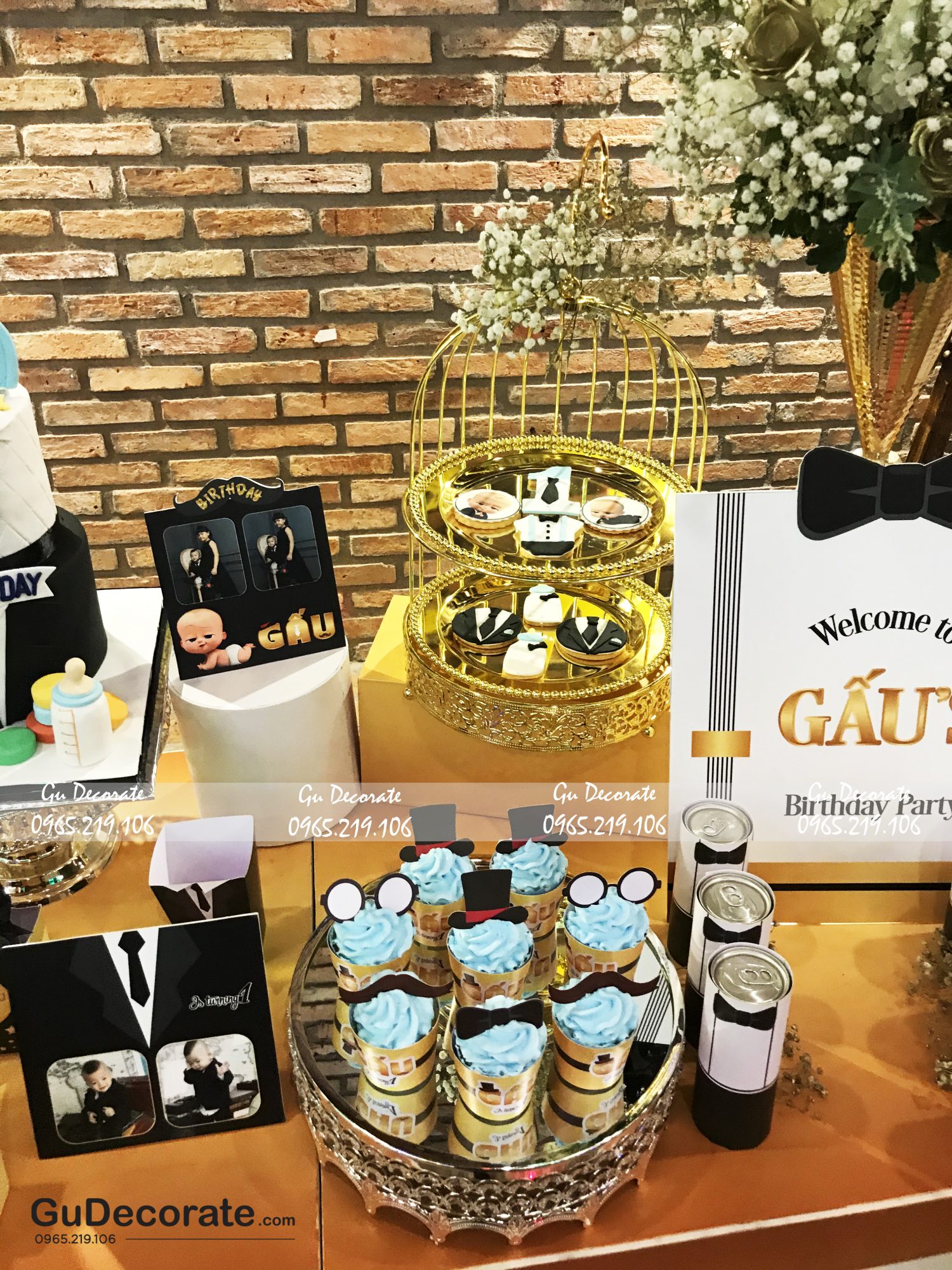 Truyền thống từ xa xưa, lễ thôi nôi của bé là cột mốc đánh dấu quan trọng đầu đời. Với cuộc sống hiện đại, thay vì tổ chức mâm cúng thôi nôi ba mẹ thường chọn tổ chức tiệc lung linh cho bé. Hoặc đơn giản trong ngày này, một bàn Gallery thôi nôi bé trai đẹp mắt cũng đủ tạo nên điểm nhấn cho ngày bé tròn 1 tuổi. Gu gợi ý cho Ba mẹ bàn tiệc chủ đề BabyBoss không bao giờ lỗi thời, độc đáo và đẹp mắt. Hãy theo chân đội ngũ chúng tôi điểm qua cách trang trí hoàn hảo này nhé.