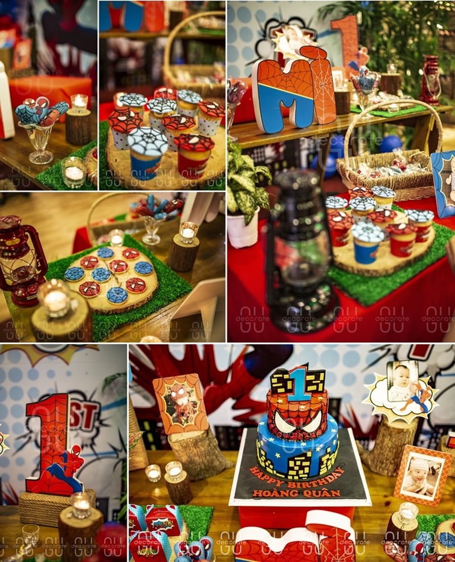 Mẫu trang trí bàn gallery thôi nôi chủ đề Spiderman