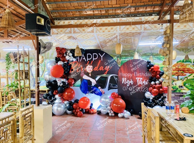 Bên cạnh đó, tone màu buổi tiệc cũng được Gudecorate tư vấn kỹ càng. Làm nổi bật, giúp buổi tiệc trở nên sang trọng, cuốn hút hơn. Và mẫu phông nền trang trí sinh nhật anh Ngà Thái là một trong những mẫu trang trí sinh nhật người lớn tone đỏ sang trọng, lộng lẫy được nhiều người lựa chọn nhà Gudecorate.
