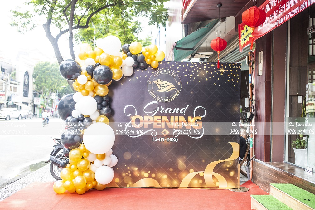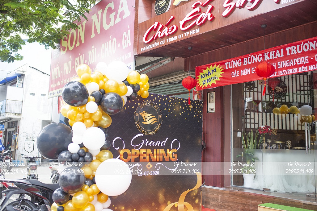 Tổ chức khai trương là dấu mốc quan trọng của doanh nghiệp, mang hình ảnh mới của mình tiếp cận bước đầu với khách hàng. Đây cùng là dịp để ngỏ lời tri ân và giữ mối quan hệ thân thiết với các khách hàng trung thàng và tiềm năng. Chủ kinh doanh luôn muốn đầu tư cho buổi ra mắt này một cách hoàn hảo nhất. Hiểu được điều đó, GuDecor mang lại cho bạn những gói khai trương cửa hàng phù hợp, chất lượng và tiết kiệm nhất. Hãy cùng ngắm nhìn buổi khai trương của hàng_Cháo ếch Singapore qua bàn tay trang trí của Gu nhé.