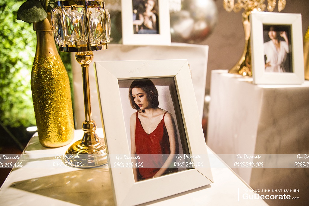 Khung hình được đặt trên bàn với những tấm hình xinh đẹp quyến rũ của chủ nhân bữa tiệc.