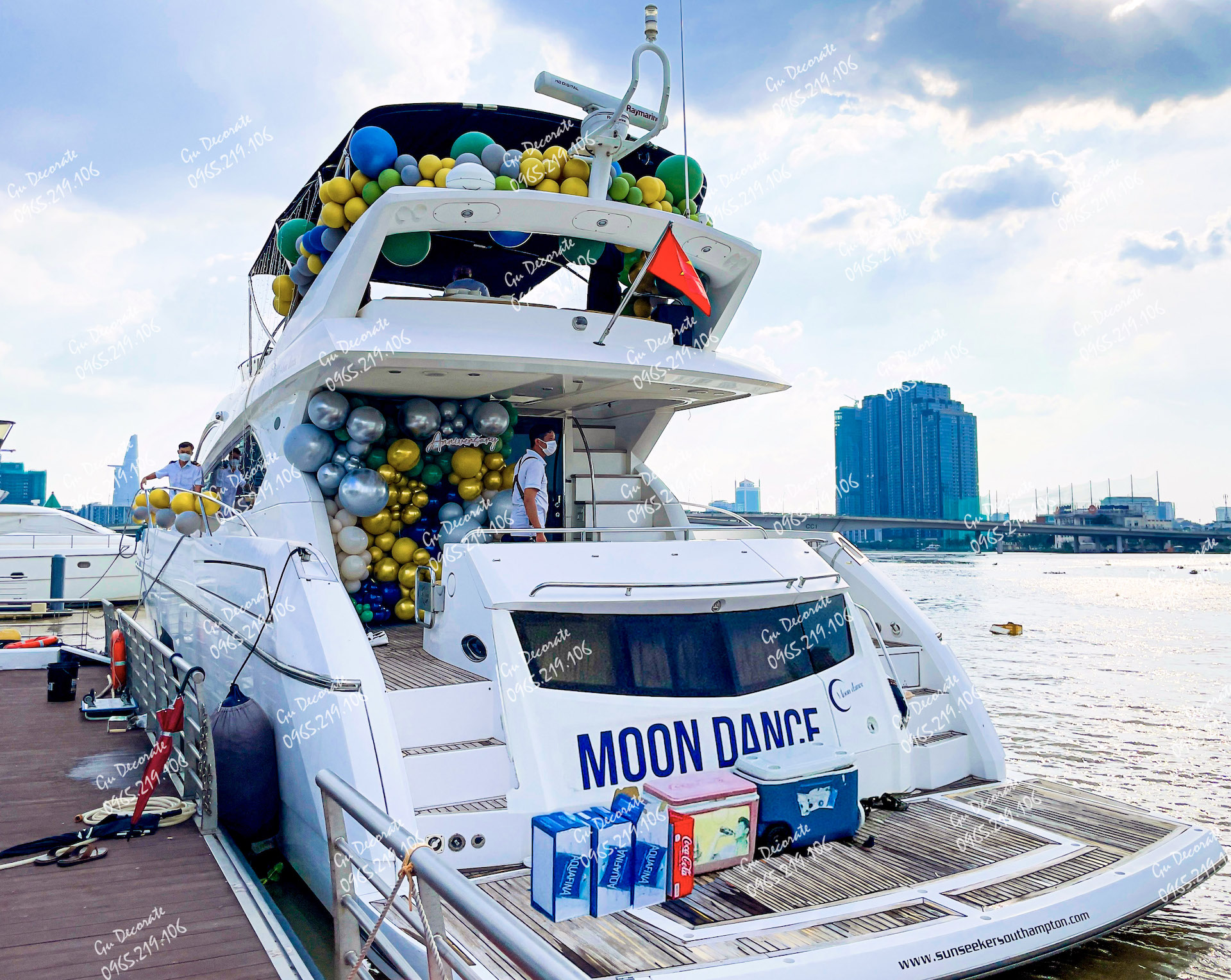 Trang trí du thuyền bằng bóng bay nhiều màu sắc góp phần làm không gian thêm sinh động.