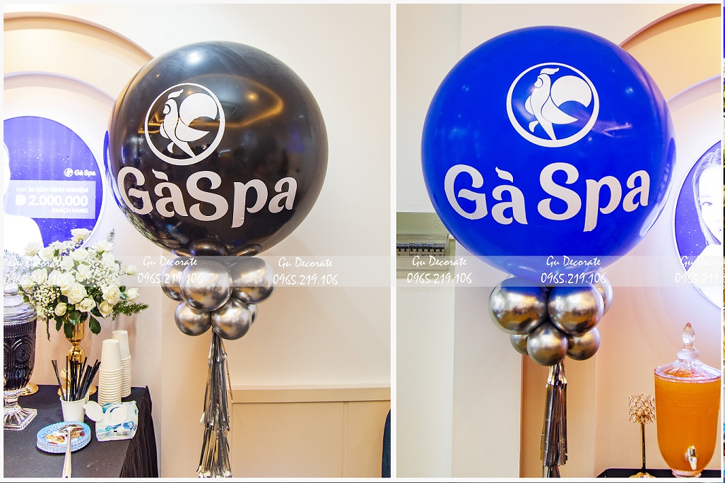 Trang trọng, lịch thiệp và đơn giản là những yêu cầu cho set trang trí từ phía Gà Spa. Với set trang trí này, GuDecorate sử dụng hai màu chủ đạo là xanh dương đậm và màu đen. Bên cạnh đó, GuDecorate cũng sử dụng bóng bay có hai màu sắc trên để tạo sự nhẹ nhàng và làm nổi bật thương hiệu Gà Spa