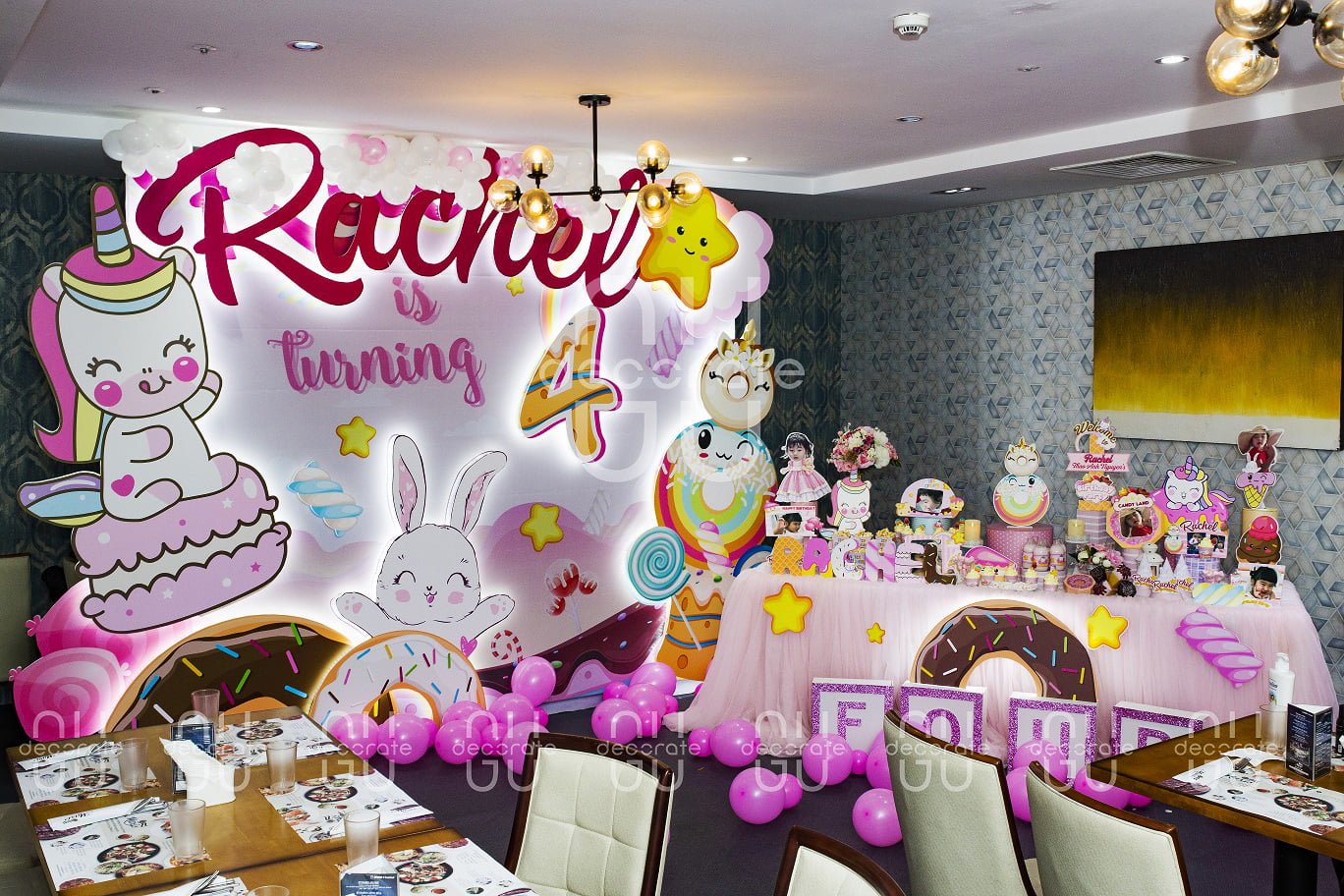 Trang Trí Sinh Nhật Bé Gái – Chủ Đề Unicorn,Bánh Donut
