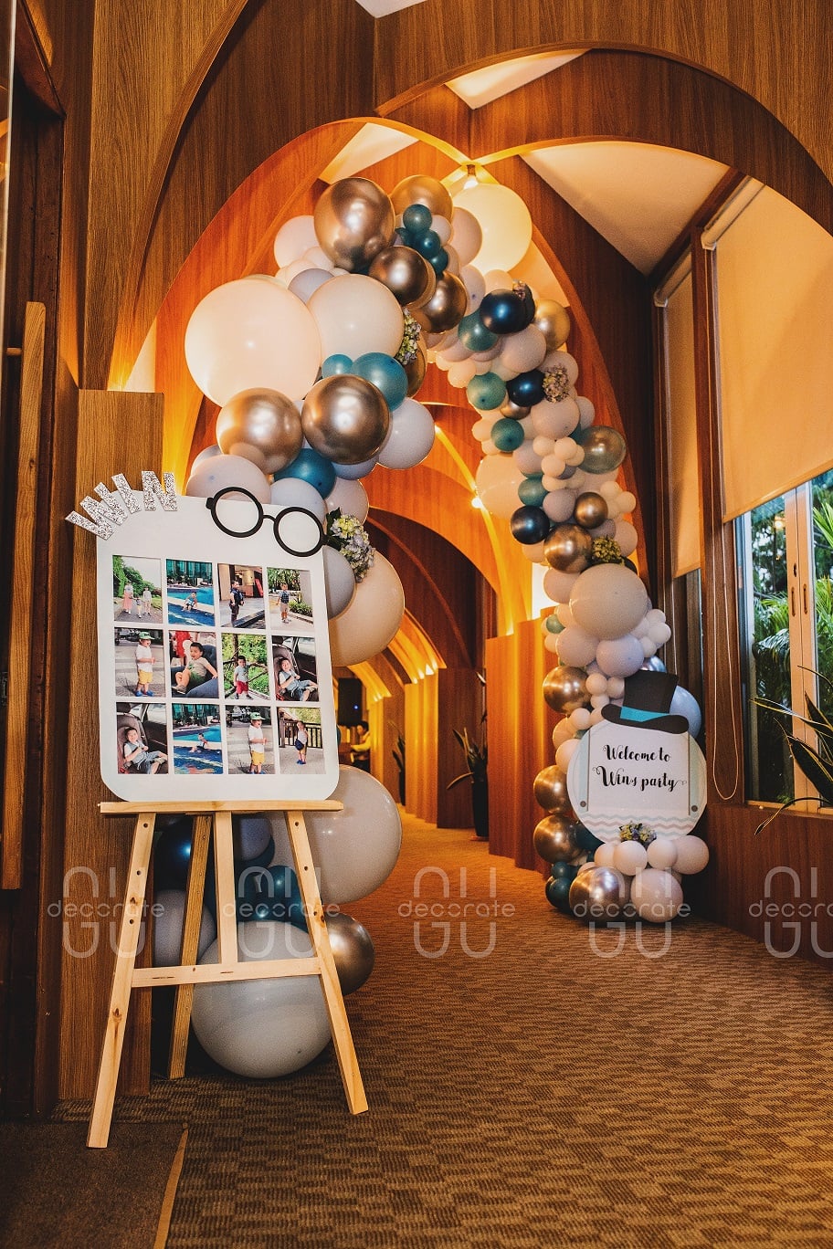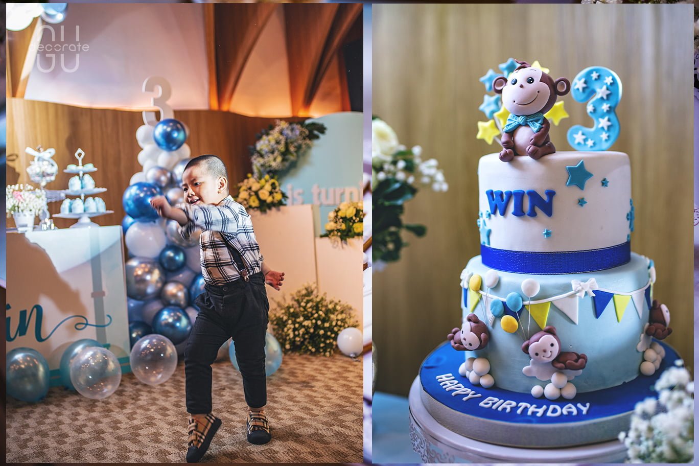 Mừng bé Win lên ba, gia đình đã tổ chức một buổi tiệc nhỏ ấm cúng cùng bạn bè. Để phù hợp với không gian sang trọng của nhà hàng White Palace. Trang trí sinh nhật cho bé trai yêu ba mẹ không khỏi cồn cào mong đợi sản phẩm trang trí sẽ đẹp như thế nào